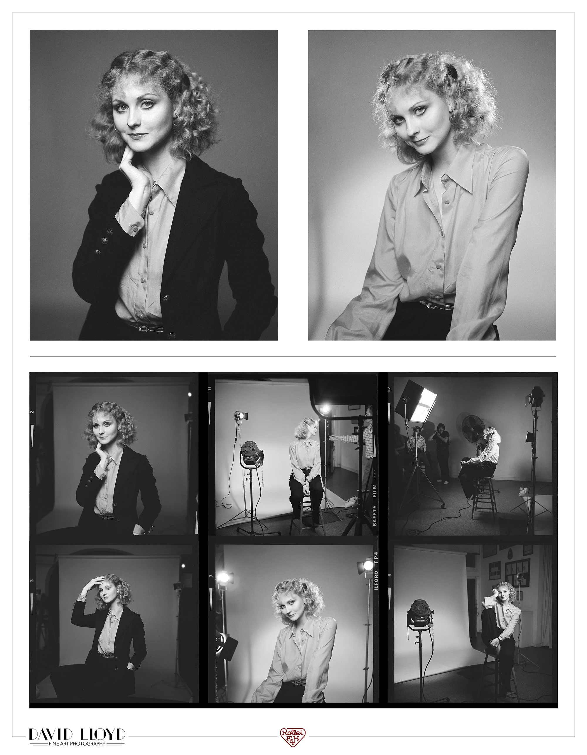 Our journey with dramatic portraiture is steeped in history. Back in 1976, we had the privilege of documenting a Hollywood fashion shoot at Tommy Mitchell’s studio for Vivitar Corp. Using a Rollie 3.5F 75mm lens and ILFORD FP4 2-1/4 roll film, we explored the raw power of studio lighting and posing in crafting narrative portraits.